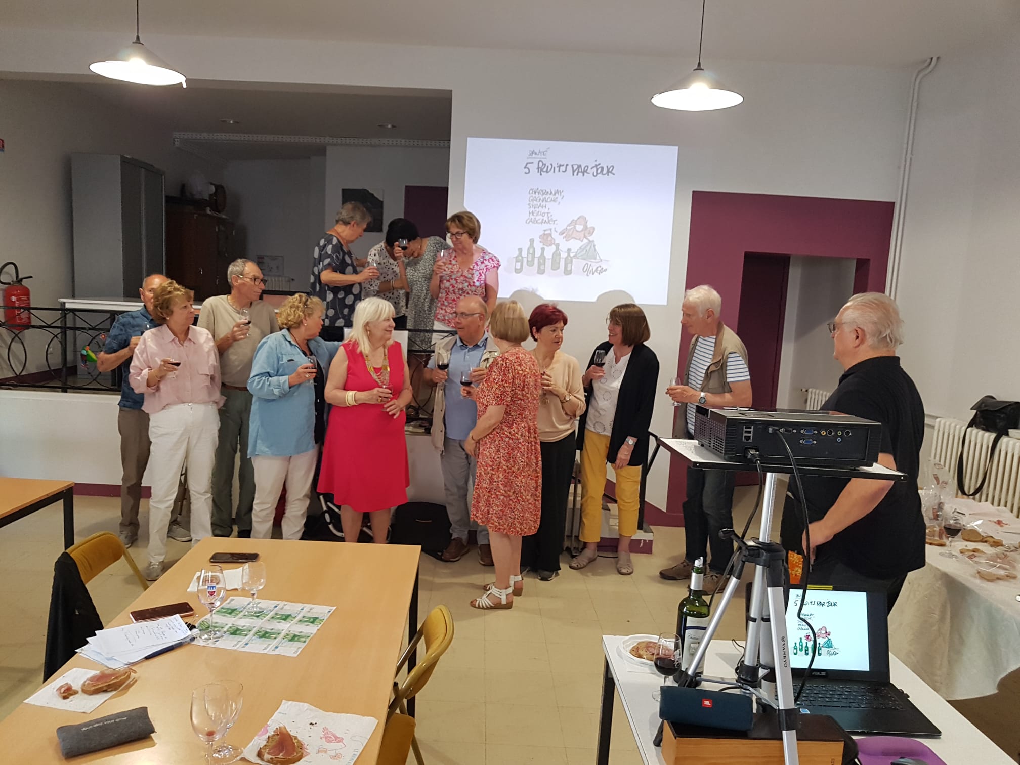 đ·Le 13 juin 2023: DerniĂšre sĂ©ance d’Ćnologie avant les vacances. Une annĂ©e bien instructive oĂč nos adhĂ©rents ont appris beaucoup de choses sur les vins. Les animations reprendront dĂšs septembre prochain.