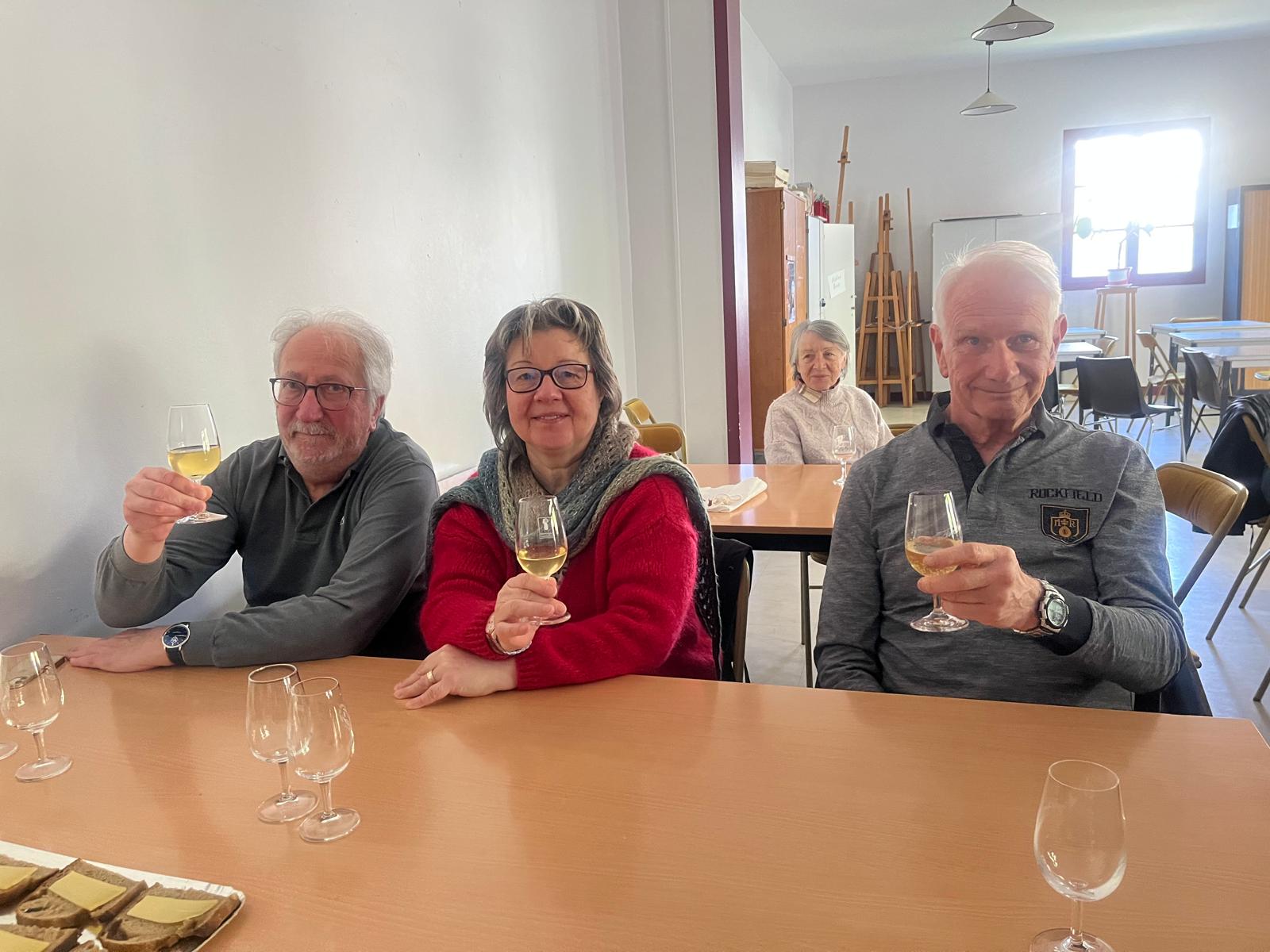 đ·17 juin 2025: derniĂšre animation d’Ćnologie avec la dĂ©gustation de trĂšs bons crus. Merci Ă Monique et Ă Jean-Claude dans l’organisation de cette animation.