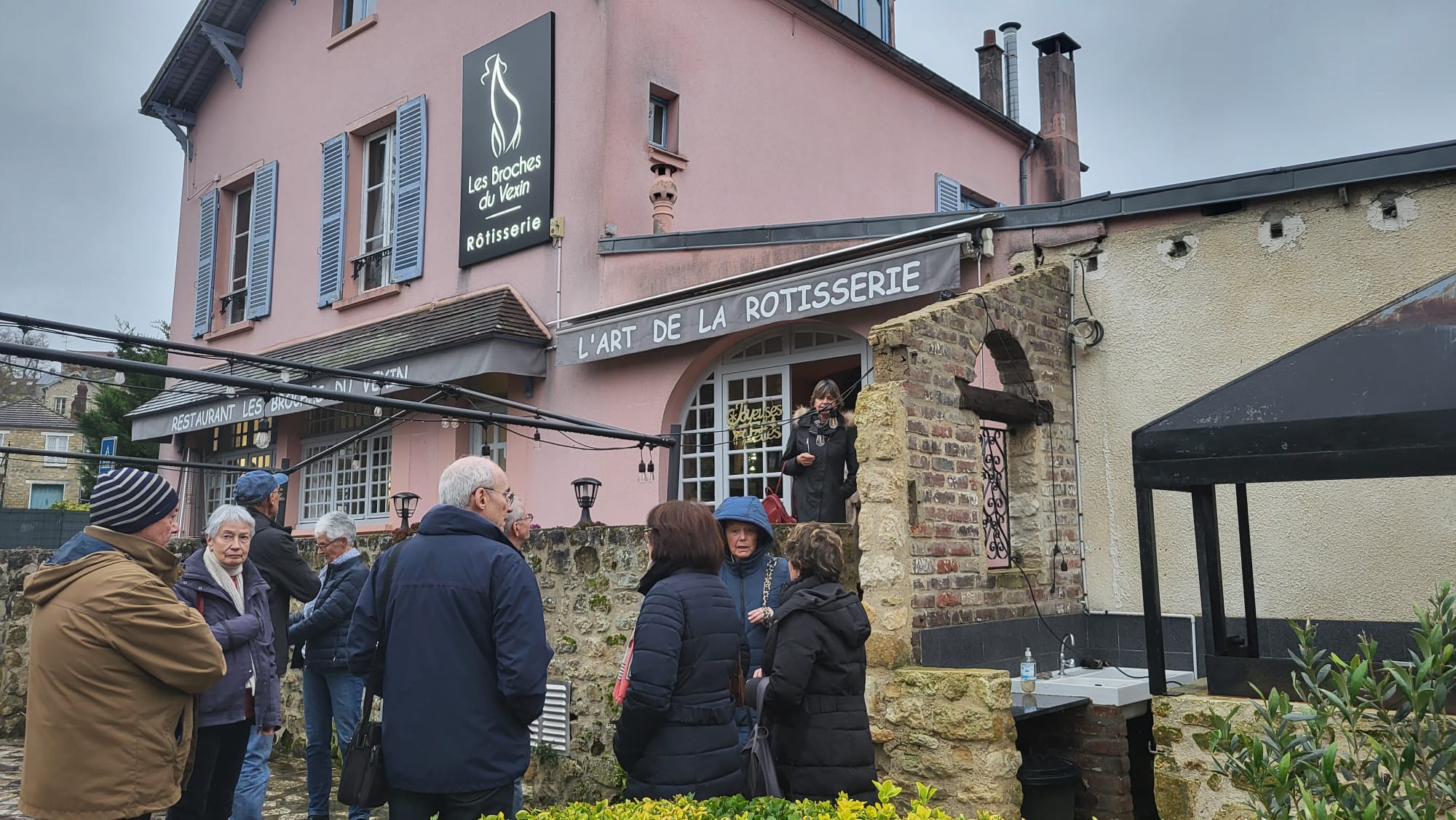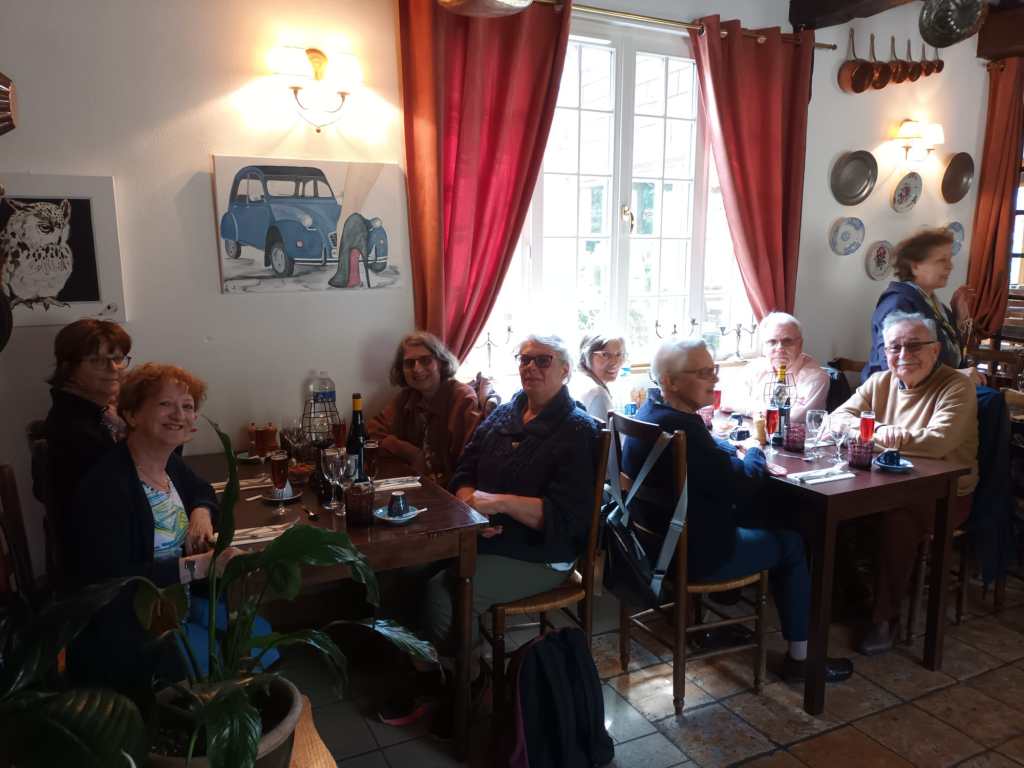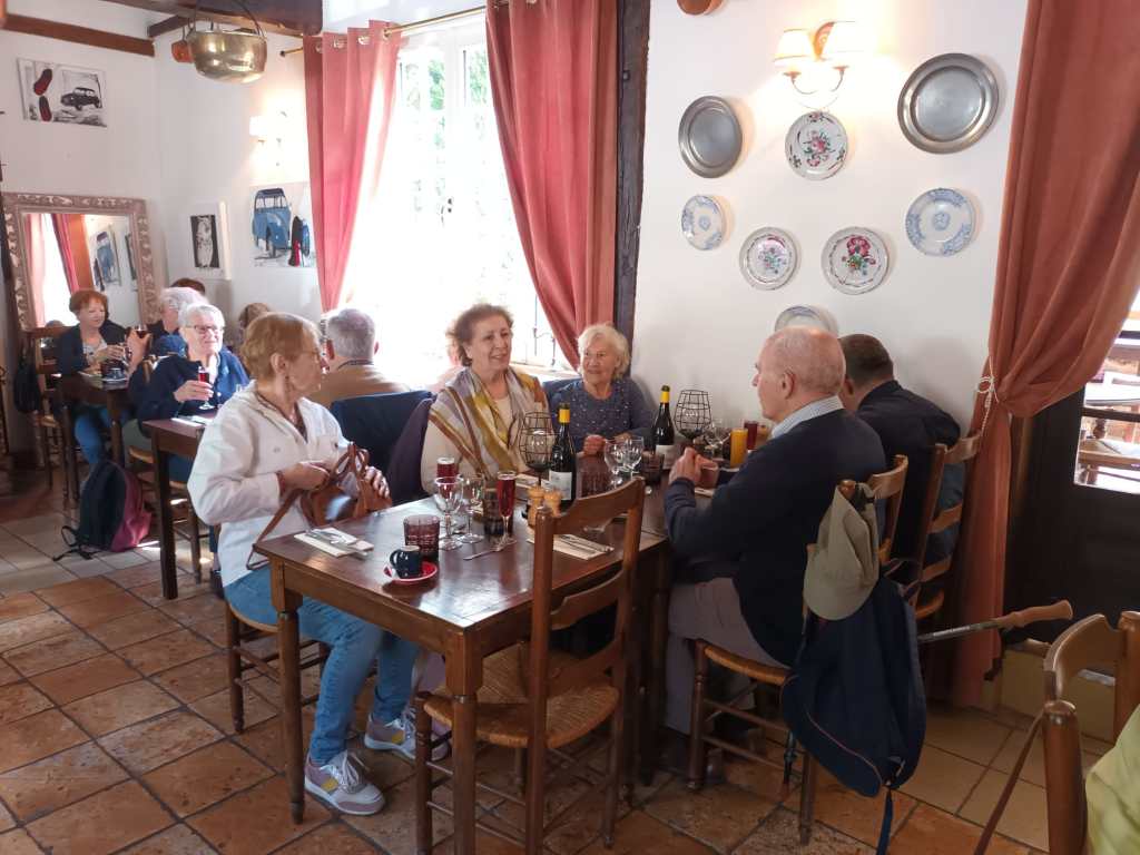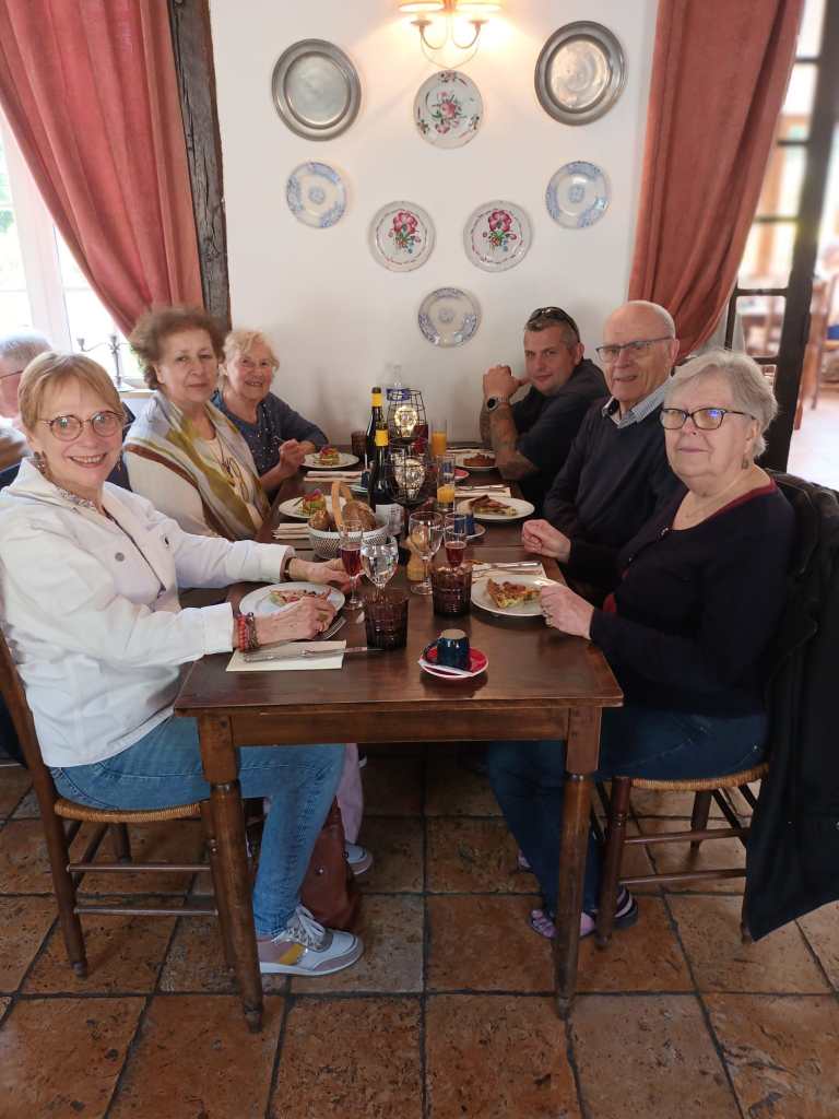Par un temps pluvieux et venteux, nous nous sommes tous retrouvĂ©s autour d’un bon repas, rĂ©chauffĂ©s par les viandes qui tournaient sous un feu rougeoyant, au restaurant » Les Broches du Vexin » Ă Montgeroult.