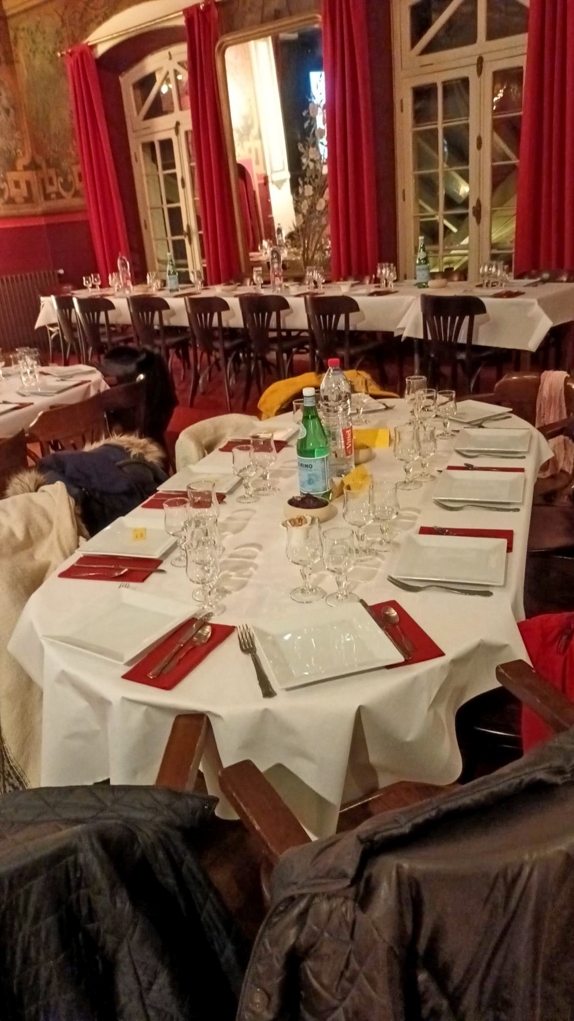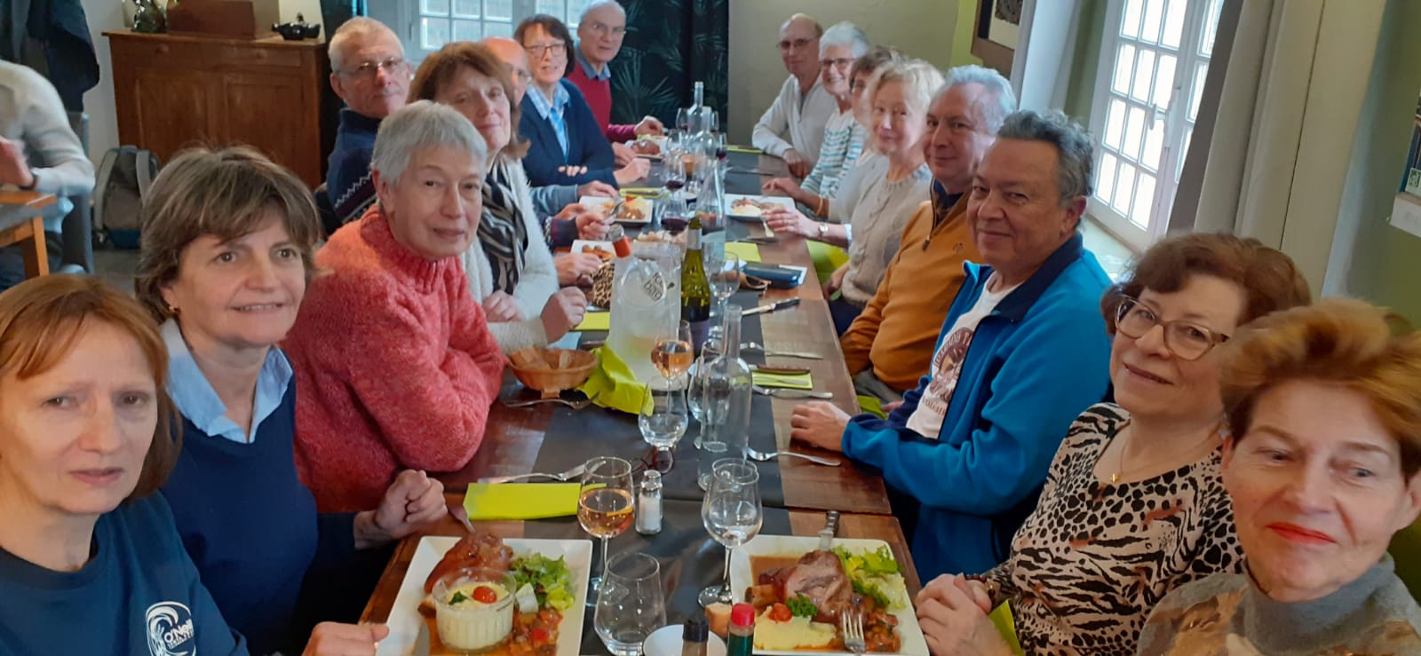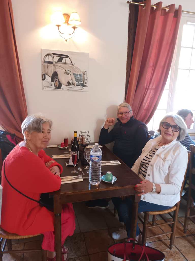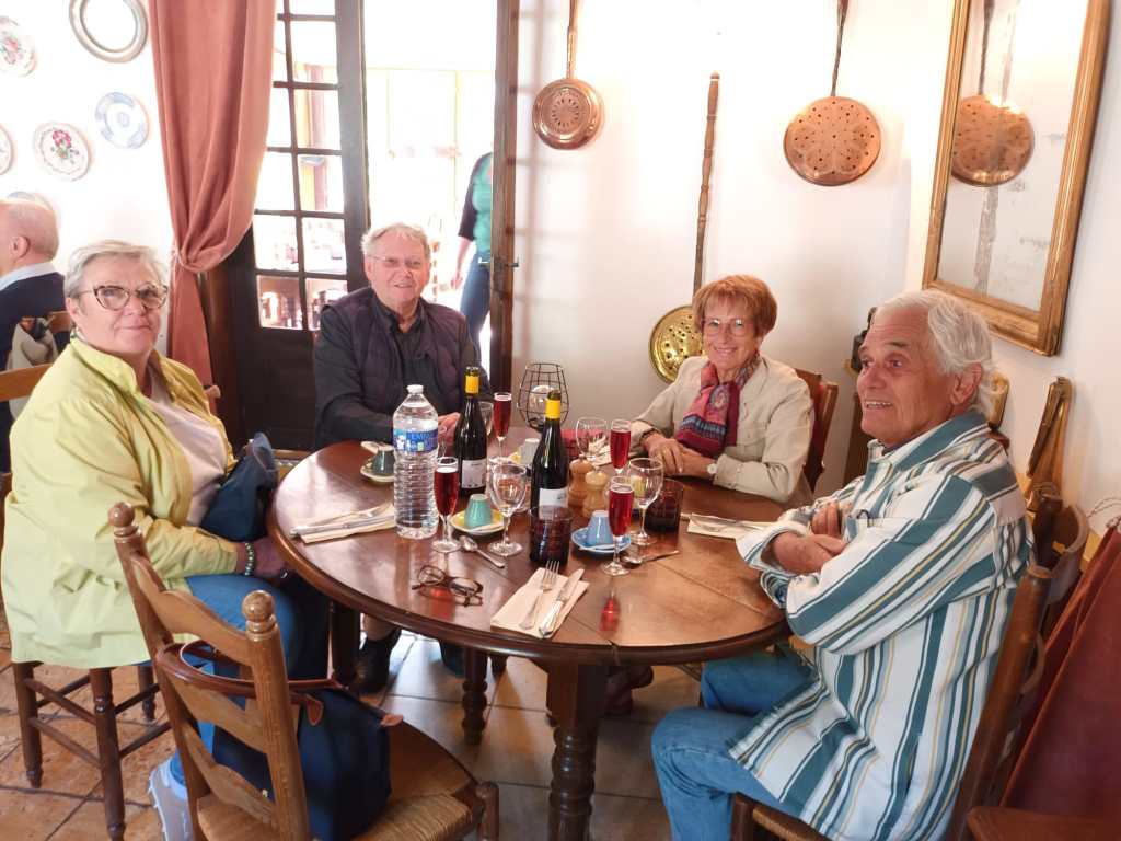 Par un temps pluvieux et venteux, nous nous sommes tous retrouvĂ©s autour d’un bon repas, rĂ©chauffĂ©s par les viandes qui tournaient sous un feu rougeoyant, au restaurant » Les Broches du Vexin » Ă Montgeroult.