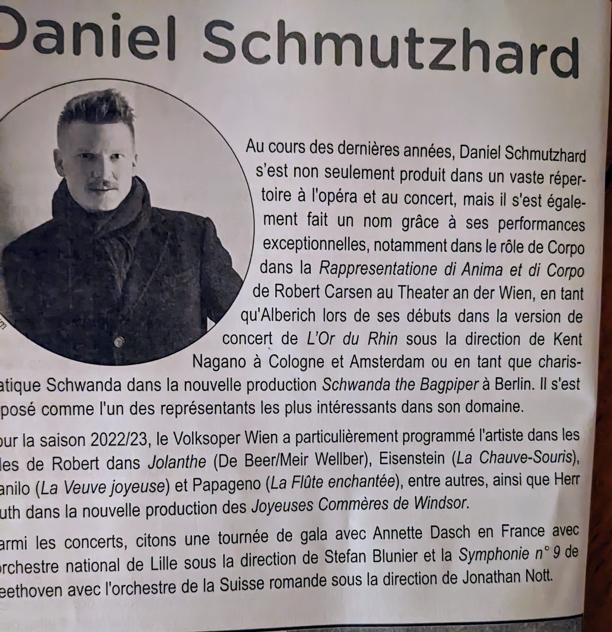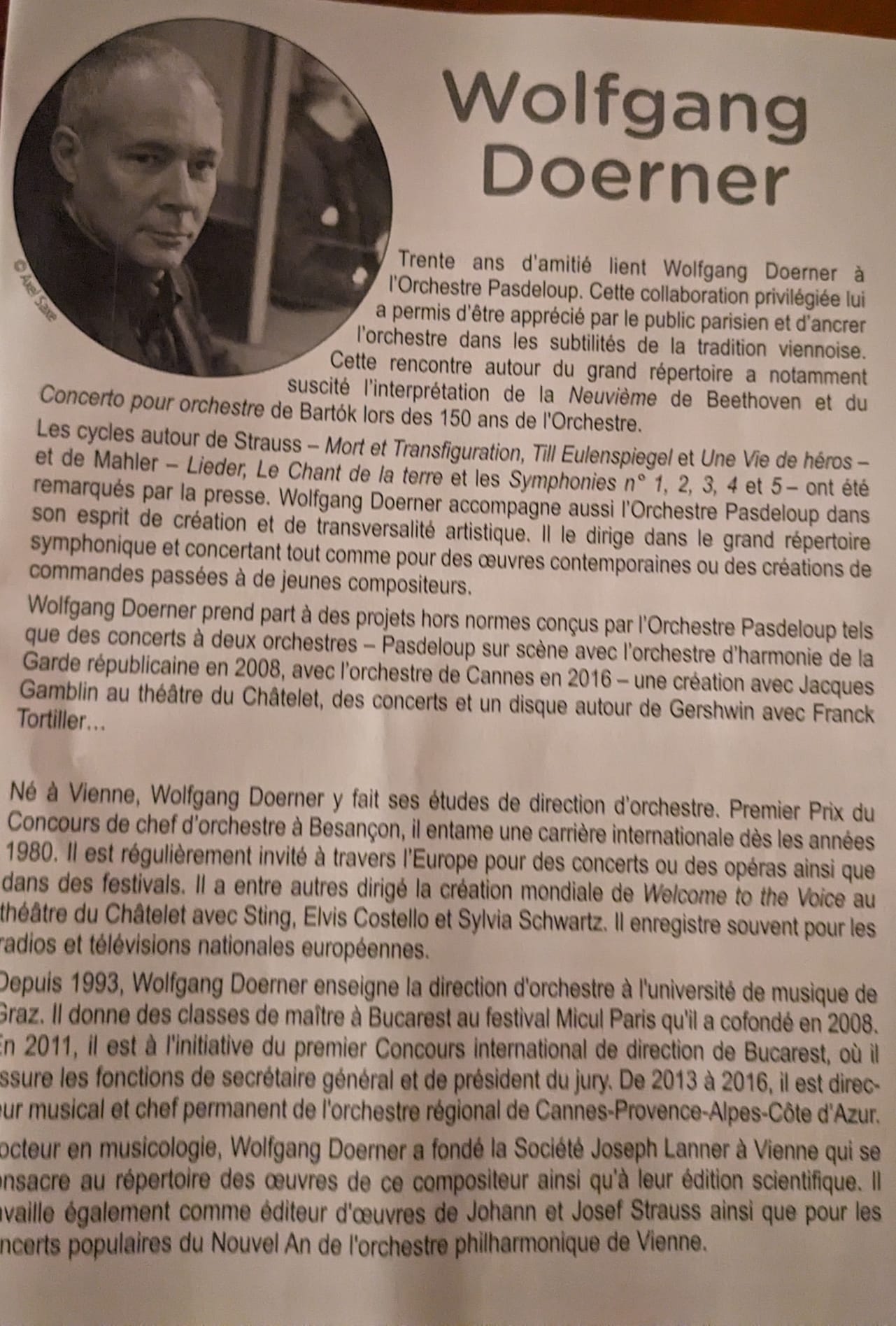 Un chef d’orchestre Wolfgang Doermer, des musiciens et un baryton Daniel Schmitzhard, un concert magnifique menĂ© par des personnes passionnĂ©es par leur mĂ©tier.