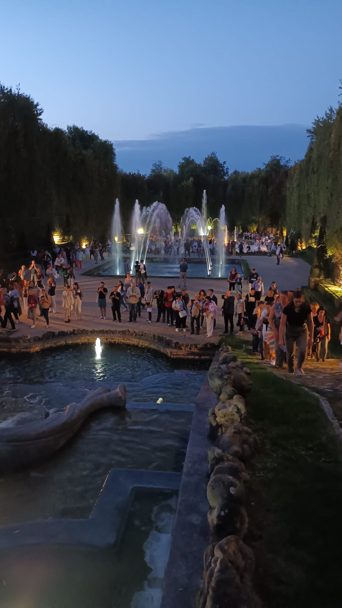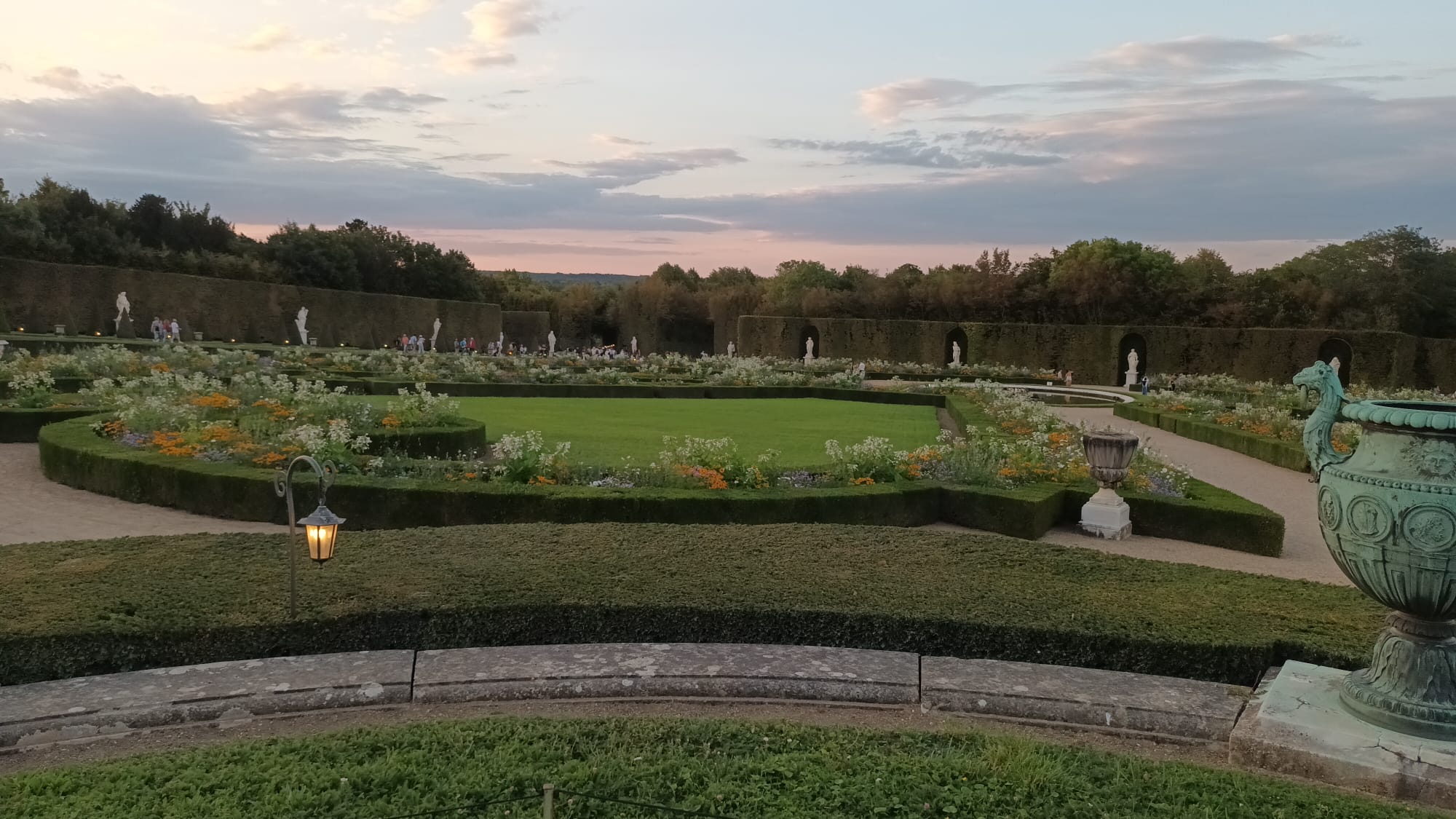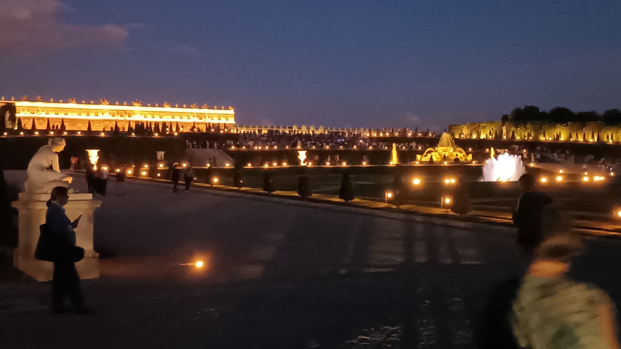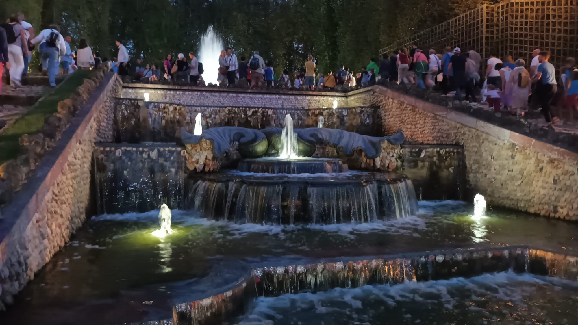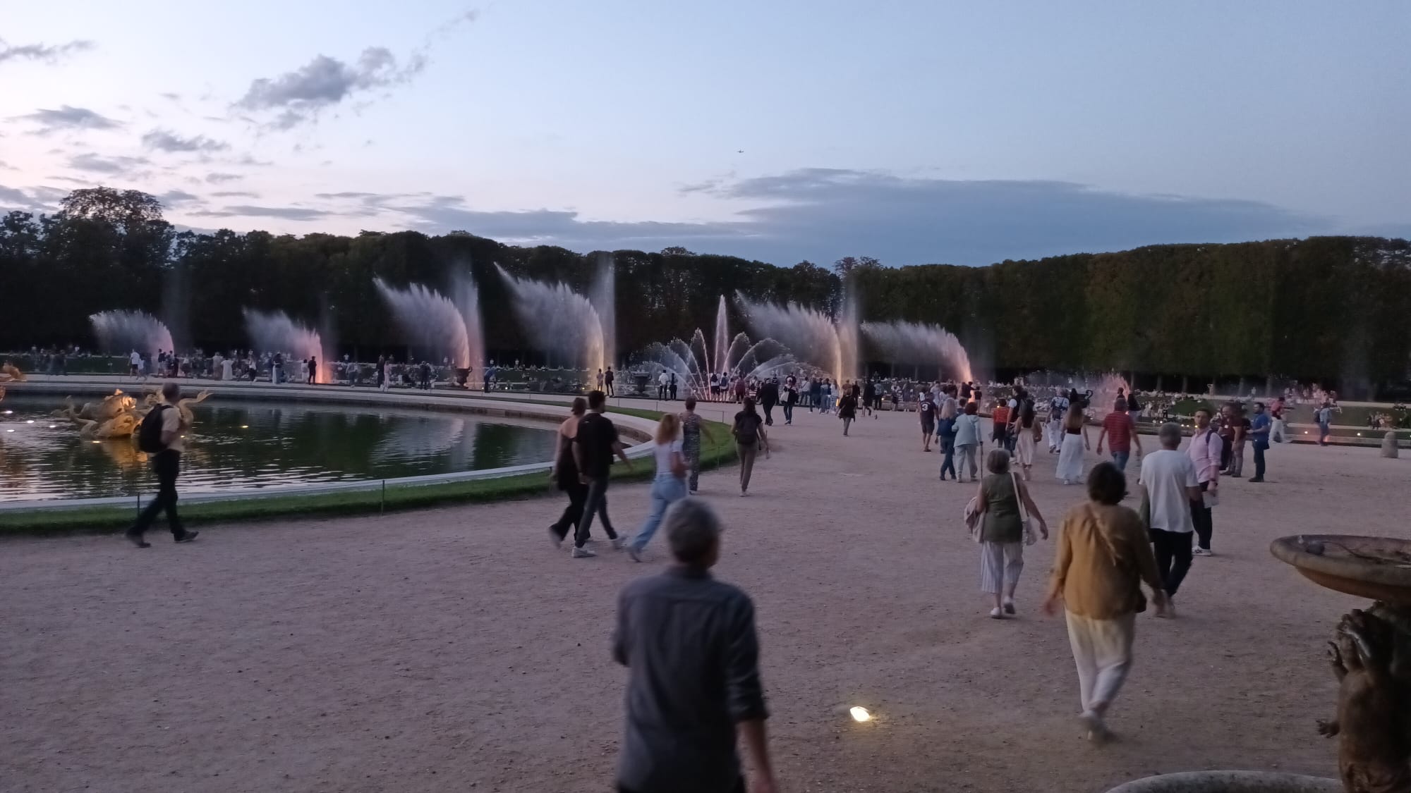 Les adhĂ©rents d’AVF Pontoise ont eu le plaisir d’assister au spectacle des Grandes Eaux de Versailles. DĂ©ambulant dans un dĂ©dale de bosquets et fontaines, dĂ©couvrant des surprises d’architecture et de sculptures fantastiques, magnifiĂ©es par une mise en lumiĂšres reproduisant les lueurs tremblotantes des chandelles d’autres fois. La soirĂ©e a Ă©tĂ© couronnĂ©e par trĂšs beau feu d’artifice faisant vibrer de mille feux multicolores cet extraordinaire domaine.