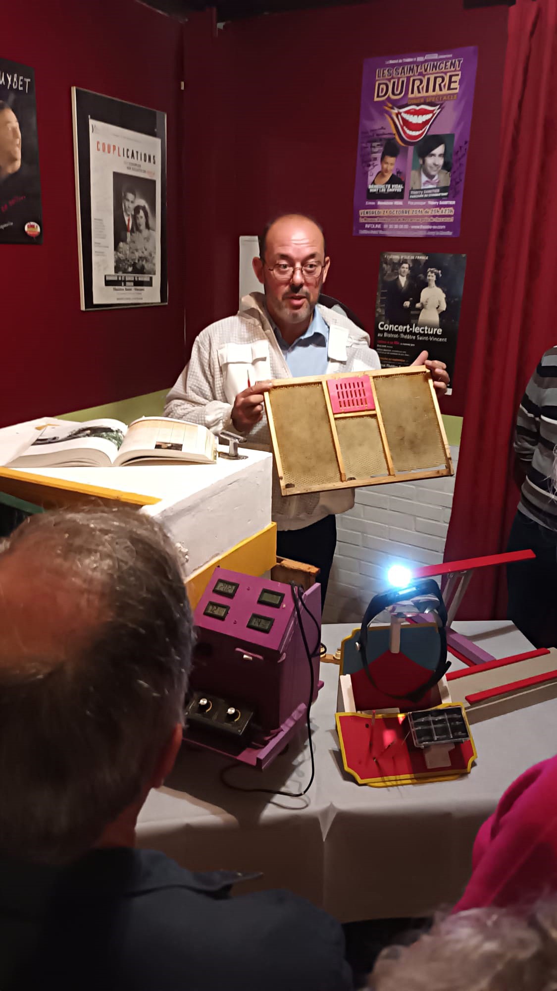 Hier soir 20 adhĂ©rents ont participĂ© Ă une confĂ©rence sur les abeilles. Des apiculteurs ont expliquĂ© le processus de la vie d’une abeille, de la rĂ©colte ensuite du miel. Les abeilles vivent en colonie. Elles forment une sociĂ©tĂ© trĂšs organisĂ©e, un peu comme une grande entreprise.
