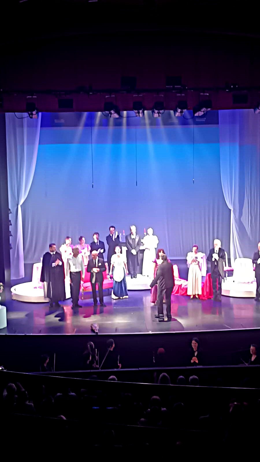 SoirĂ©e OpĂ©ra au Casino d’Enghien, au spectacle : La Traviata, opĂ©ra créé en 1853, par Giuseppe Verdi. La Traviata est ainsi lâhistoire tragique dâun amour impossible au XIXe siĂšcle, entre une courtisane et un jeune bourgeois. Loin des commentaires politiques dissimulĂ©s, des contextes exotiques et des dĂ©cors grandioses qui caractĂ©risent ses autres Ćuvres, la Traviata offre une fĂ©roce critique de la sociĂ©tĂ© Ă travers des personnages rĂ©alistes. TrĂšs bon moment.