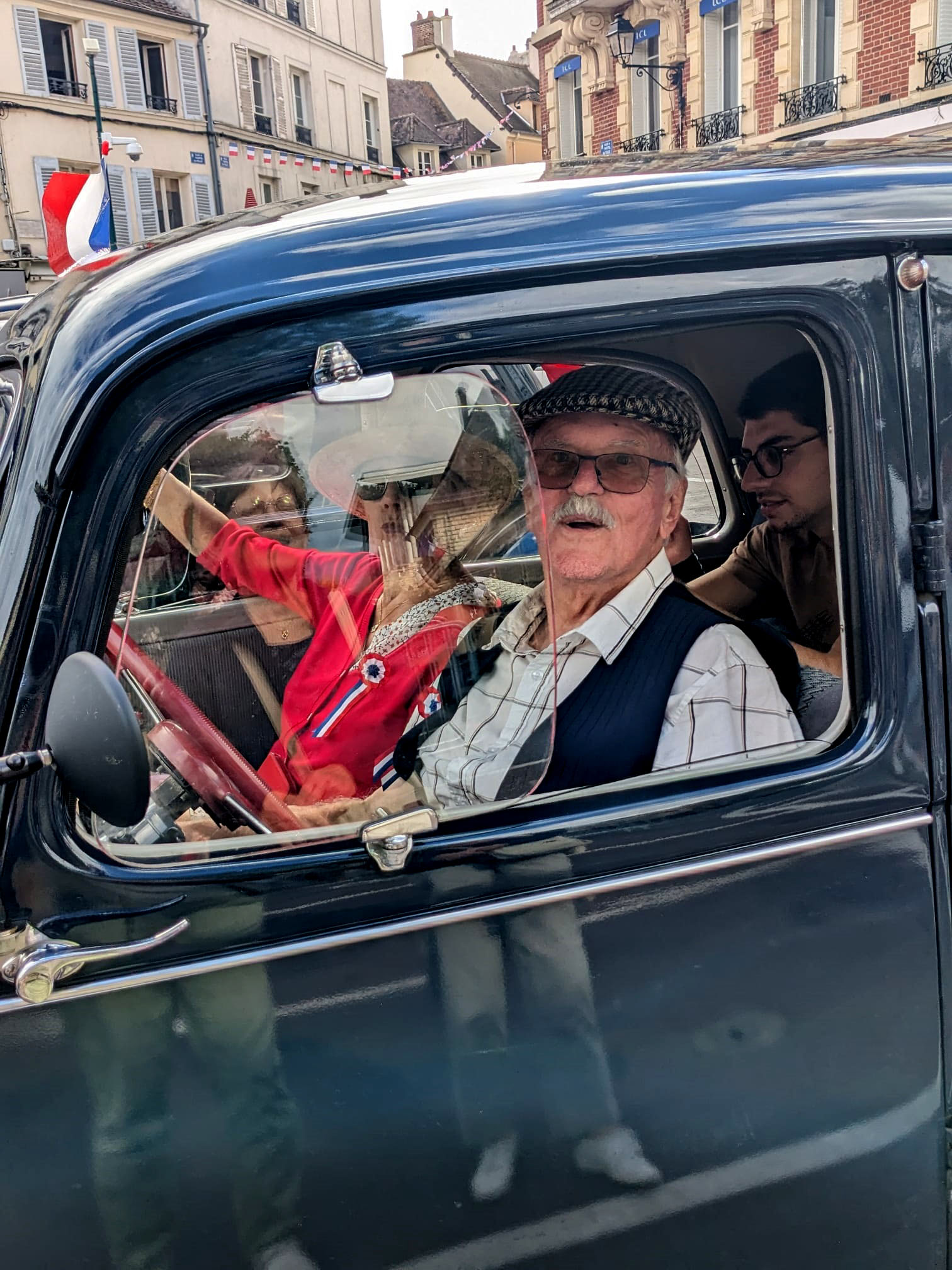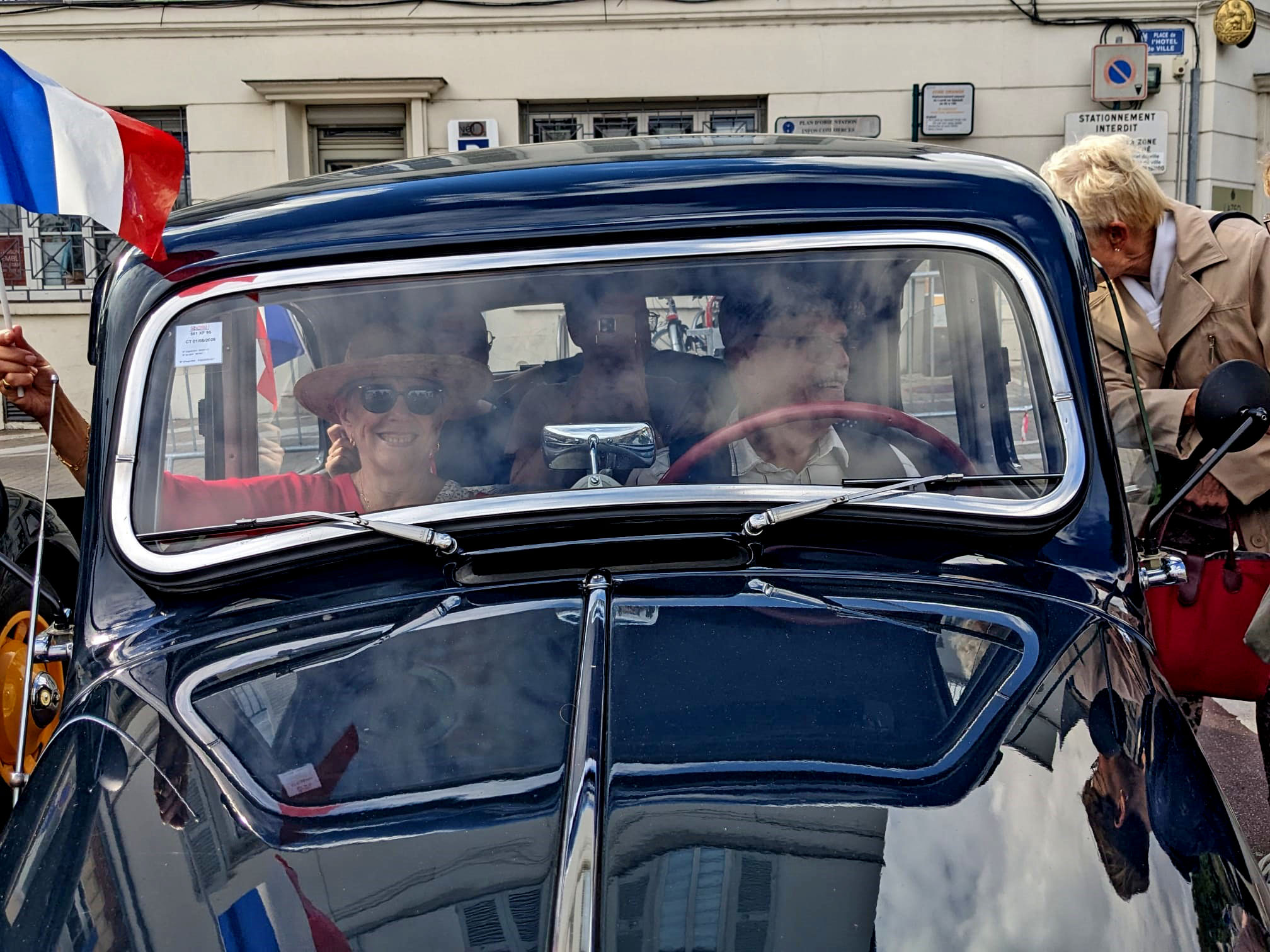 Bravo Ă Michel et Ginette pour leur participation, avec la belle voiture CitroĂ«n d’Ă©poque, Ă la cĂ©lĂ©bration des 80 ans de la libĂ©ration de Pontoise !!!