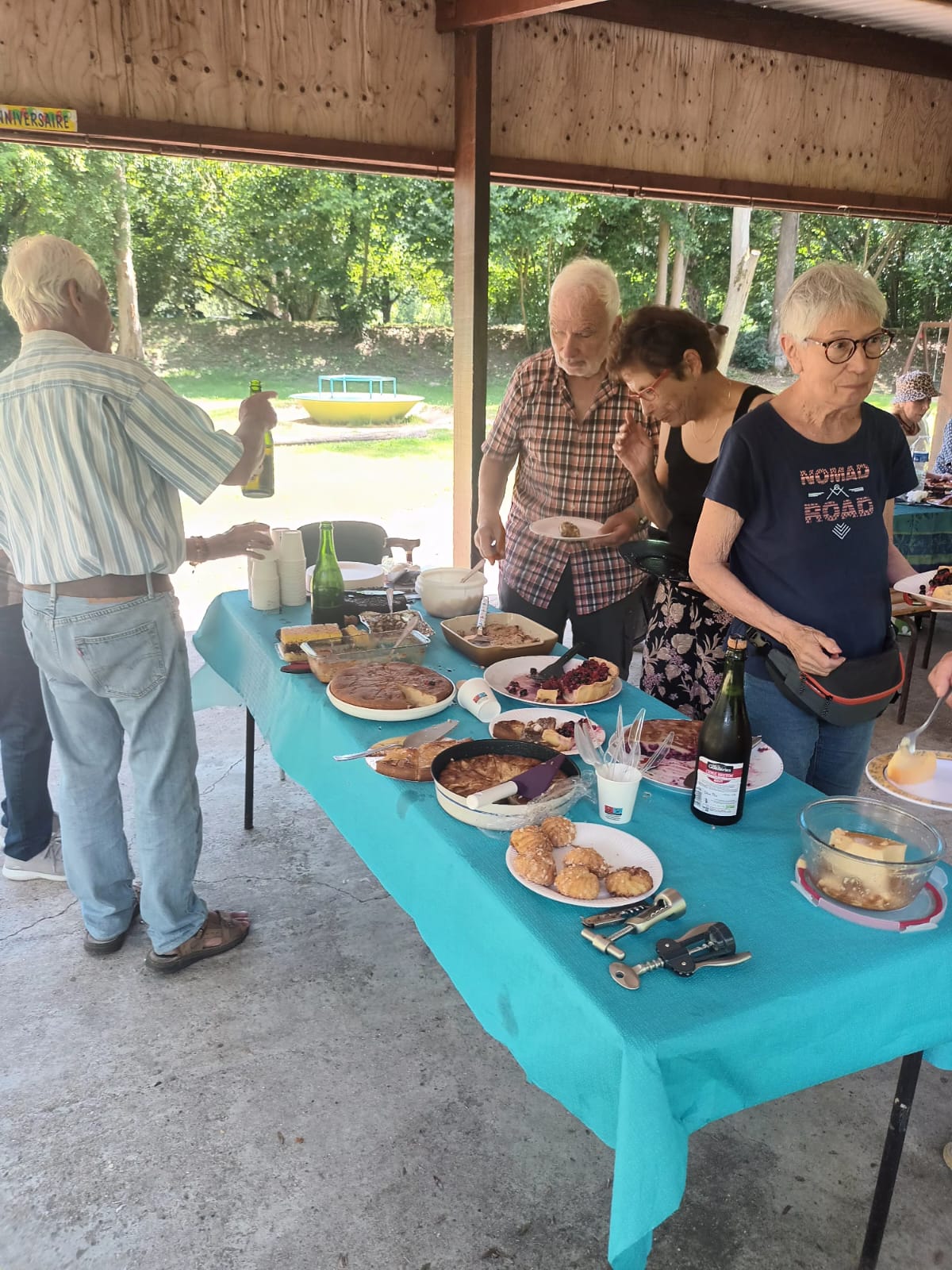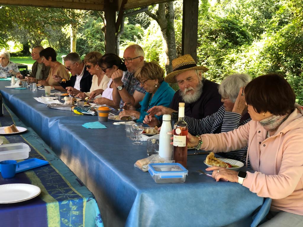 Le beau temps était au rendez-vous, et nous avons profité de l’ombre pour un déjeuner chaleureux. L’après-midi s’est poursuivi en toute gaieté : deux équipes se sont formées l’une pour une promenade et l’autre à la pétanque !!!