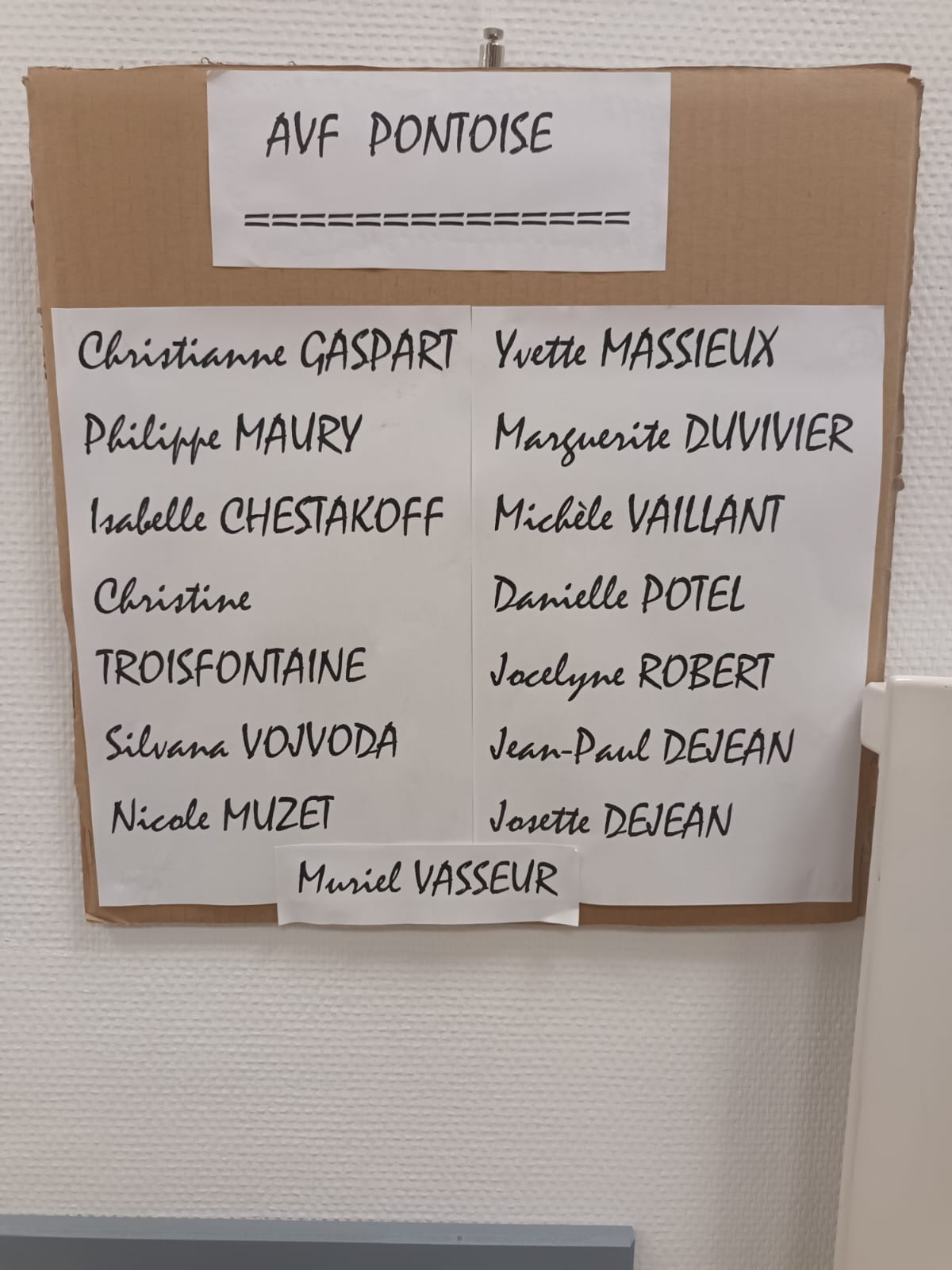 AVF : Maria FARRUGIA Françoise Panthou Jean IMHOFF Chantal BROGLIN excusée.