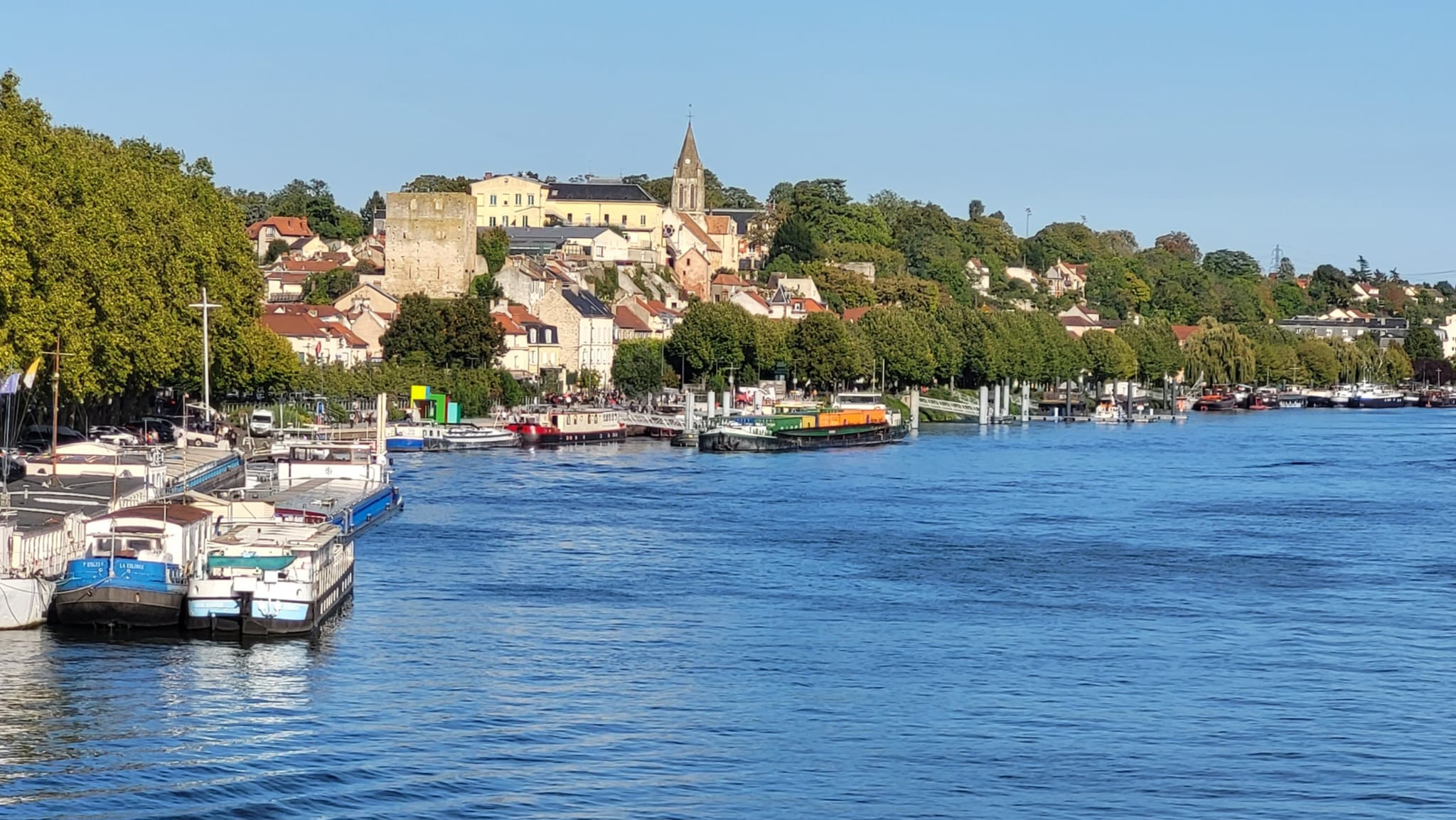 Quelle belle promenade à Conflans-Sainte-Honorine, sous un soleil éclatant et une Seine bleu azur !