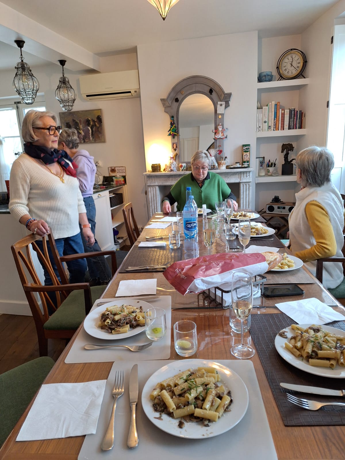 Un midi pas comme les autres avec l’atelier cuisine chez Claire et Maxime !!! PrĂ©paration de « rigatoni au confit de canard » đ Les sept participants on bien suivi la prĂ©paration et Ă©crit la recette et ensuite ils se sont tous rĂ©galĂ©s dans la joie et la bonne humeur đ