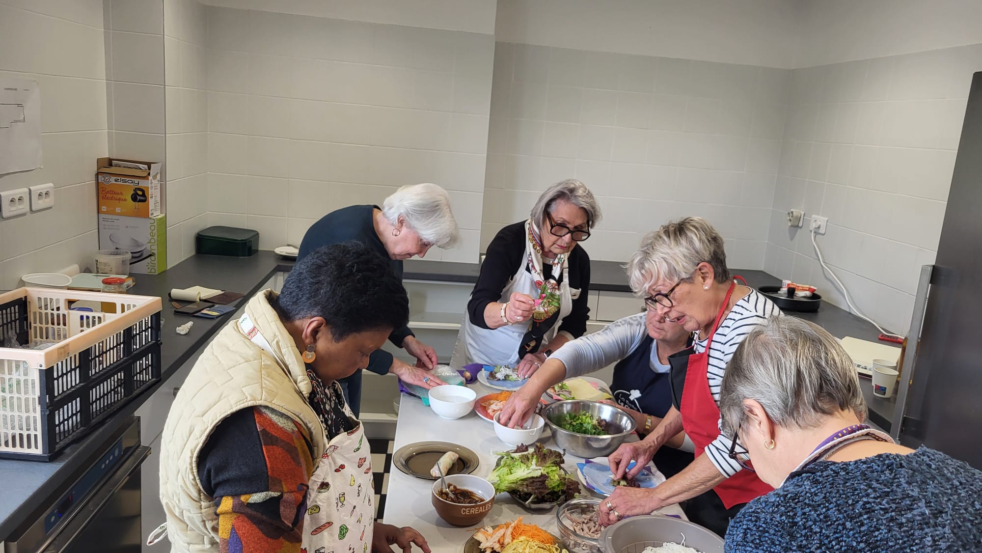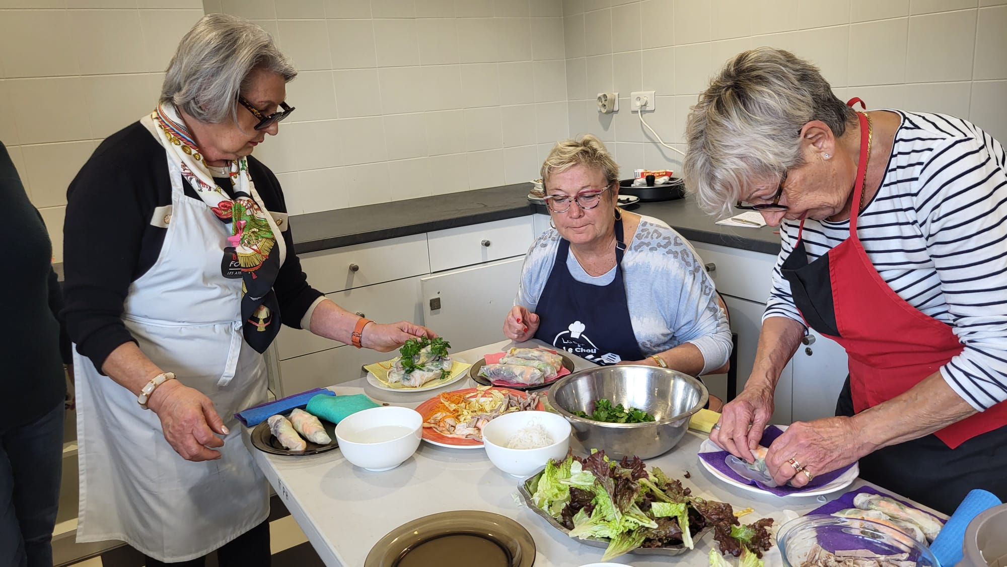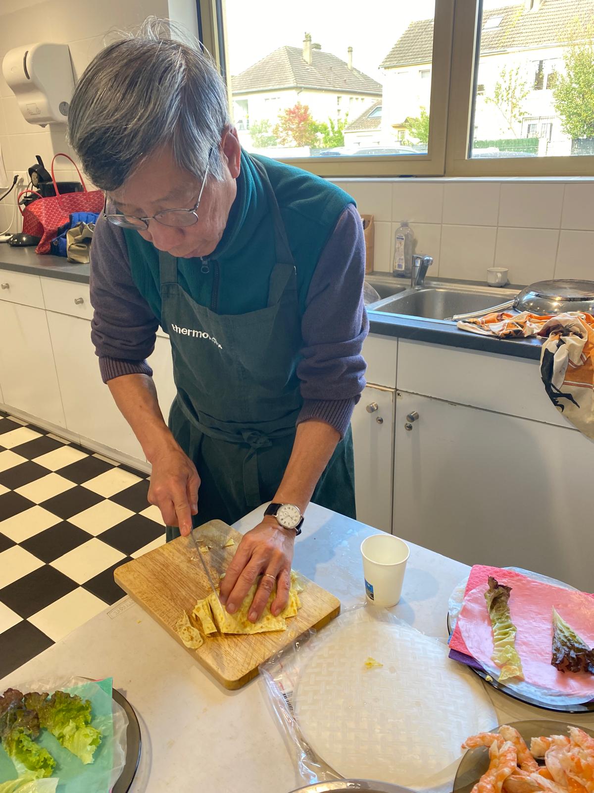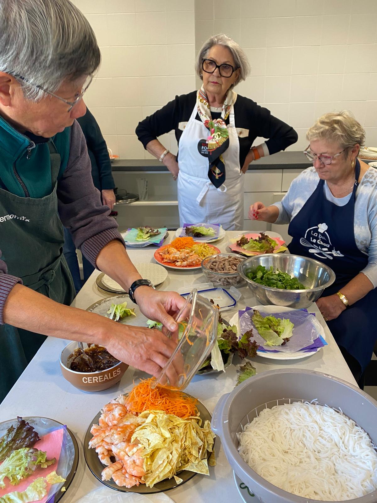 Aujourd’hui atelier cuisine pour prĂ©paration des rouleaux de printemps. Van Thanh a gentiment acceptĂ© d’animer cet atelier et expliquĂ© leur prĂ©paration. Une dĂ©gustation a eu lieu ensuite avec tous les participants. Merci Thanh !!!!